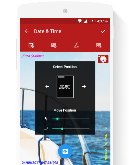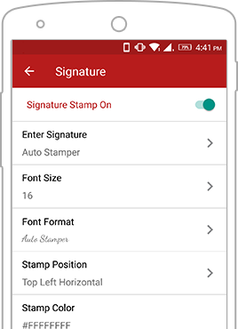 Select Date-Time or signature or GPS stamp by manually on/off functionality.